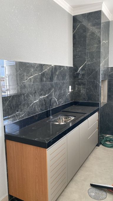 A sala integrada à copa e cozinha proporciona um ambiente amplo, iluminado e acolhedor, ideal para receber amigos e familiares. A casa ainda dispõe de móveis planejados, garantindo praticidade, organização e um excelente aproveitamento dos espaços.